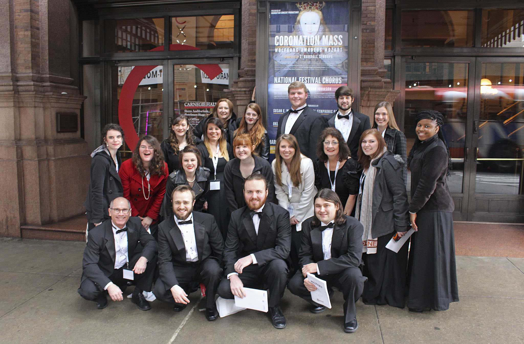 Members of SAU’s Heritage Singers and Chamber Singers choral ensembles, along with community and family members, returned to New York City in March 2015 to collaborate with five other choirs from across the U.S. to perform at the legendary Carnegie Hall.